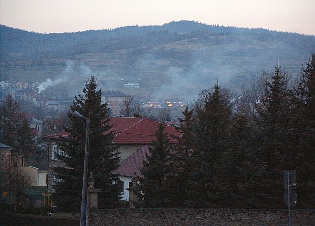 Od klasztoru w lewo masyw Chyrowej, a następny garbek to Hyczki, pod którymi się pali.