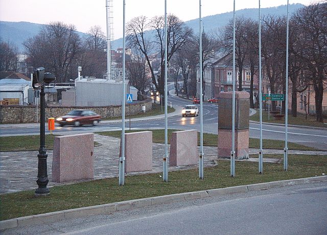 Tutaj kiedyś stało to działo samobieżne na cokole. Zamienili to na takie "coś".